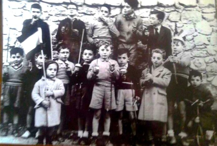 Mancant pantalles de videojocs, els fèiem nosaltres en directe, espases, banderes i molta imaginació… posant formats a la paret de l’església de Sant Elm abans de sortir a desfilar… algú se reconeix?