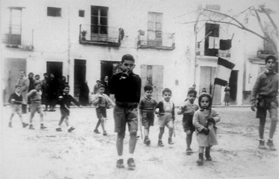 A la plaça de l’església de Sant Elm, qualsevol cosa ens servia per entretenir-nos, en una foto anterior posàvem per a la posteritat, en aquesta estàvem disposats a fer història, records inesborrables de la infància…